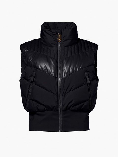 Quilted down bodywarmer with imi leather