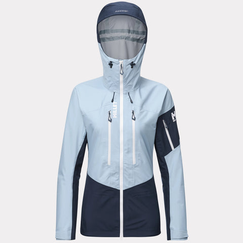 Adopt a light and stretch jacket to face the storms when ski touring with the M WHITE 3L mountain jacket for women. Made of very breathable Dryedge™ 3L, with a 20K breathability ratio, it protects you from the snow, rain and wind while allowing quick moisture transfer in order to keep you dry during your climbs. Pleasantly soft and elastic to provide optimum comfort and freedom of movement when up on the most beautiful slopes, this ski jacket for women is also fully adjustable. The hood is helmet compatible, and what’s more, this mountain jacket features a RECCO® reflector to assist rescue in case of an avalanche.
