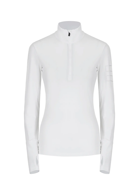 SEI TRE UNO ist ein Rollkragenpullover mit halbem Reißverschluss und individuellem Zipper, perfekt als erste Schicht bei sportlichen Aktivitäten. Hergestellt aus stretchigem Mikrofleece mit regeneriertem ECONYL®-Garn, zeichnet sich dieser leichte und schlank geschnittene Pullover durch das OneMore-Logo in den zwei Streifen am linken Ärmel aus. Diese sind von der erhabenen Applikation aus Swarovski-Kristallen umrahmt, die einen zusätzlichen glamourösen Schimmereffekt verleihen.