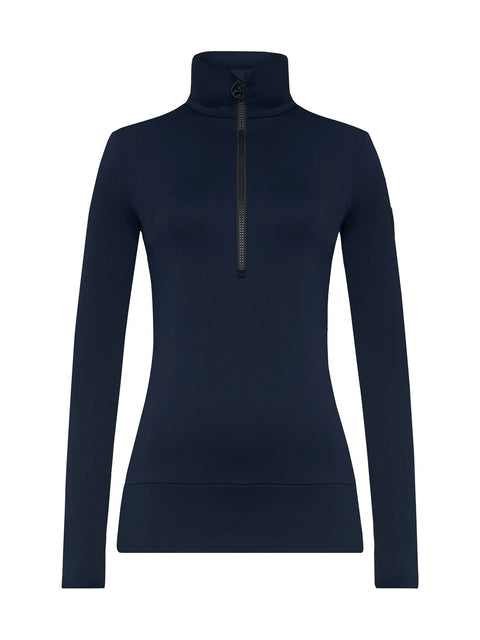 Ein Muss für die Wintersaison: Toni Sailer setzt auf ein klares Design. Beim Skifahren stechen auch die funktionalen Eigenschaften hervor, da sie ein echtes Trageerlebnis schaffen. Die WIEKA Basisschicht ist mit dem neuen Reißverschluss-Zipper und einem Samt-Logo-Patch gebrandet. Das Damen-Skishirt ist auch perfekt für einen Crossover-Look.